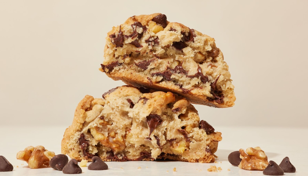 Our signature cookie is packed with semi-sweet chocolate chips and chunks of walnuts, so every single bite is as good as the one before. Huge, thick, and gooey but crisp on the outside.