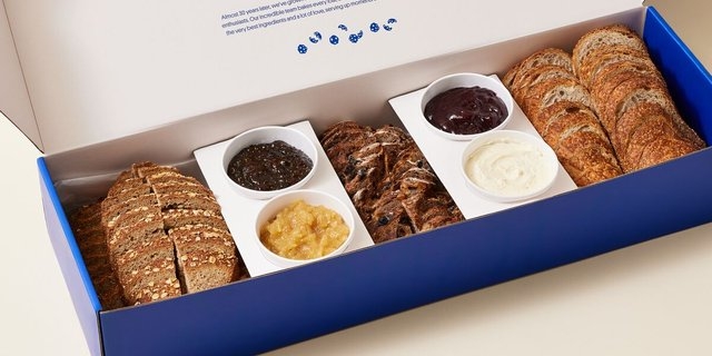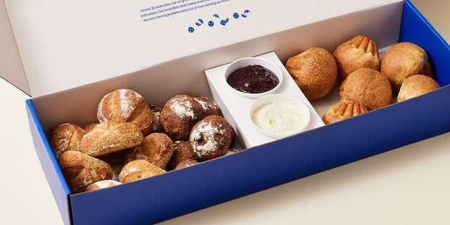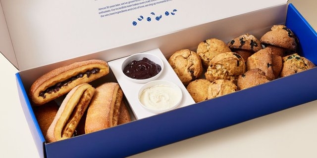 Start your day with fresh-baked blueberry muffins full of plump whole blueberries, signature scones, and buttery brioche with a side of jam and butter. Includes 5 blueberry muffins, 5 oatmeal raisin scones, 3 chocolate chip brioche, 3 cinnamon brioche, 5 oz butter, 5 oz jam