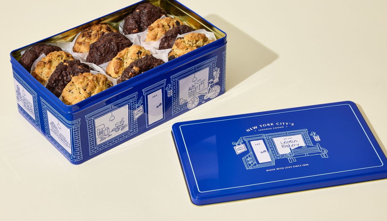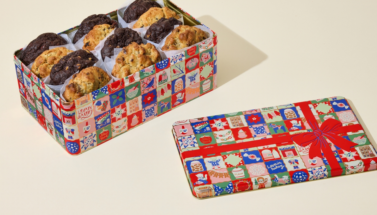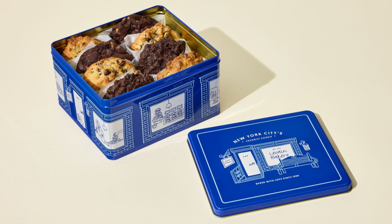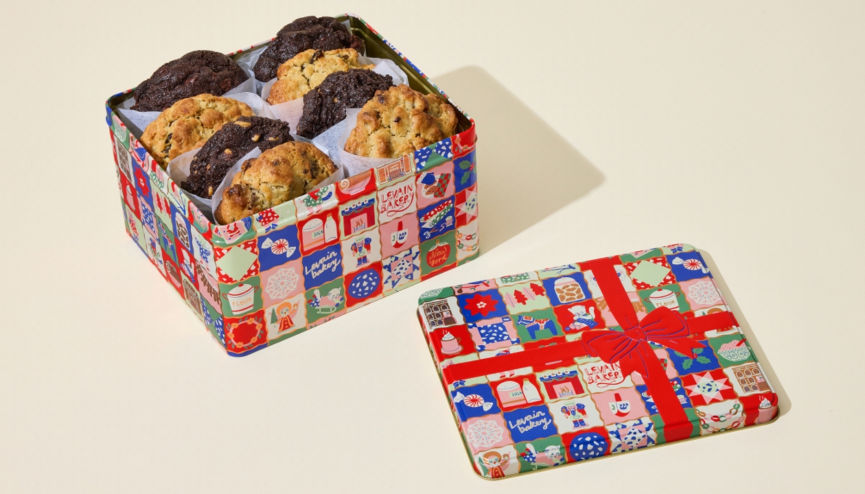Designed to hold up to 12 of our iconic 6-ounce cookies, the Levain holiday tin adds delight to the unboxing experience.