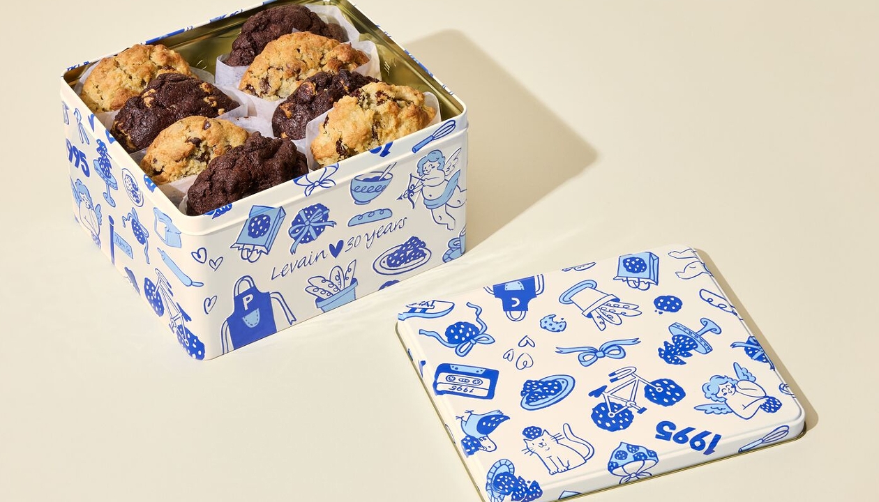 Elevate the joy of Levain cookies with our exclusive tin celebrating 30 years of baking and friendship — a delightful gift that combines 8 iconic cookies and a lasting memento.