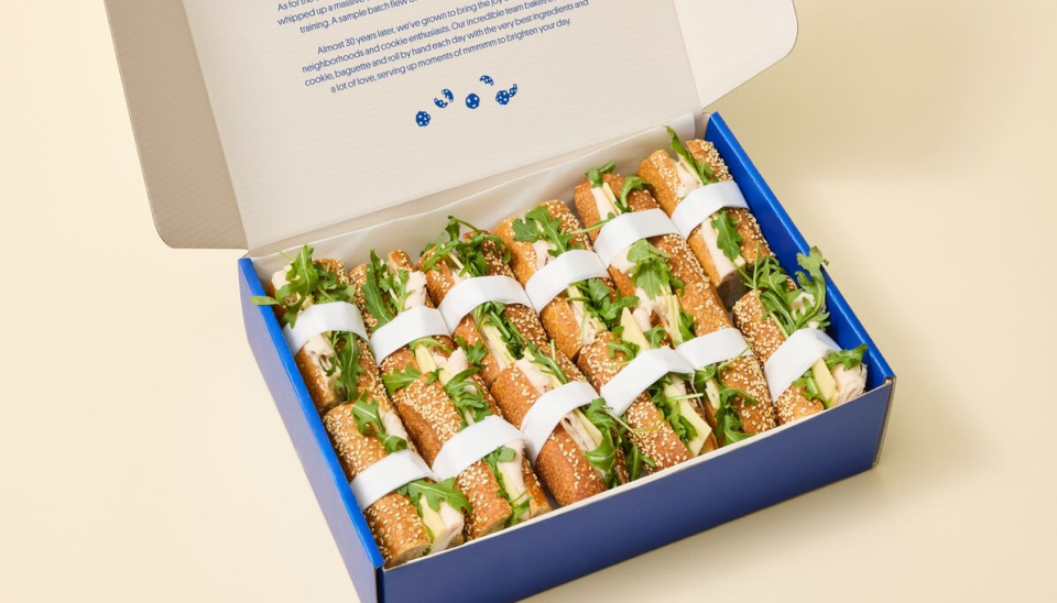 To some, it’s a “baguette with butter & jam” — to those in the know, it’s a BB&J, and this is a platter full of them. Show everyone why it’s a sensation so you can tell them, I told you so. Includes 18 mini baguette butter, and jam sandwiches
