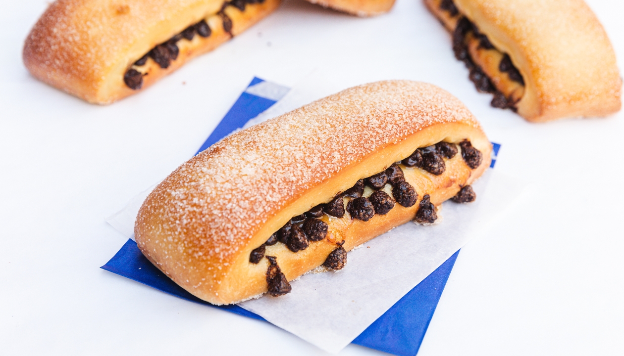 Our answer to the chocolate croissant. A dreamy blend of buttery brioche and sweet dark chocolate. Featured on the Food Network's Roker on the Road.