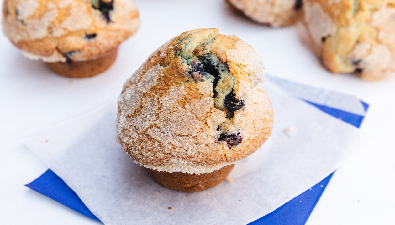 Moist, sweet, and loaded with fresh blueberries, these muffins are among our most popular items.