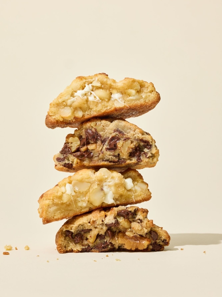 This assortment celebrates our first cookie and our newest cookie—a “something old, something new” tribute to our heritage. It features White Chocolate Macadamia: White chocolate, macadamia nuts, and a sweet, crunchy, buttery perfection and our OG chocolate chip walnut.
