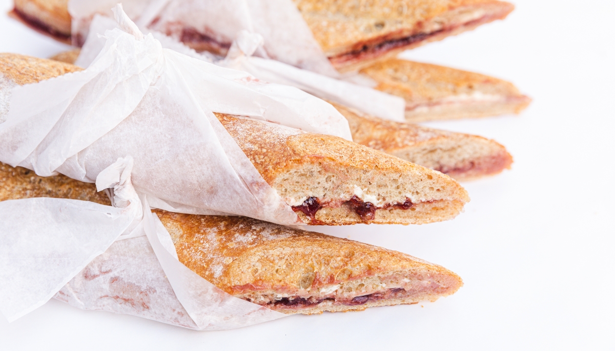 Simple and, oh so, satisfying. Fresh sweet butter and seedless raspberry jam slathered on a crunchy baguette. A traditional favorite and a real crowd pleaser.
