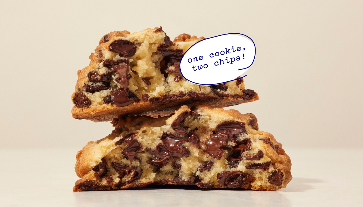 You don’t have to play favorites anymore. We made this box for all the people who really love chocolate… whether that’s a classic chocolate chip cookie loaded with chips, or a chewy, decadent, almost brownie-like cookie. Consider this the ultimate indulgence. Includes 14 dark chocolate chocolate chip, 14 two chip